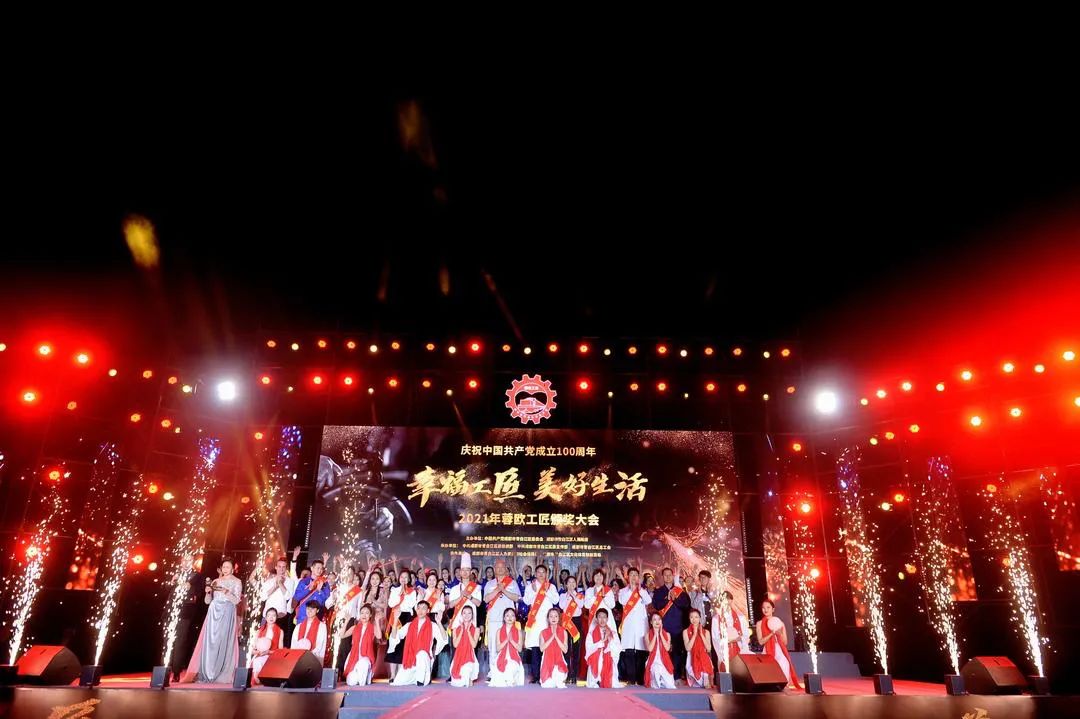 為隆重慶祝中國共產(chǎn)黨成立100周年 聚力建設現代化國際化的成都北部中心 教育和引導廣大職工群眾弘揚勞模精神 勞動(dòng)精神、工匠精神 4月28日晚青白江田園廣場(chǎng)舉行 — 2021年“蓉歐工匠”頒獎大會(huì ) —